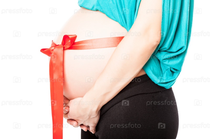 Красный бант на животе беременной женщины