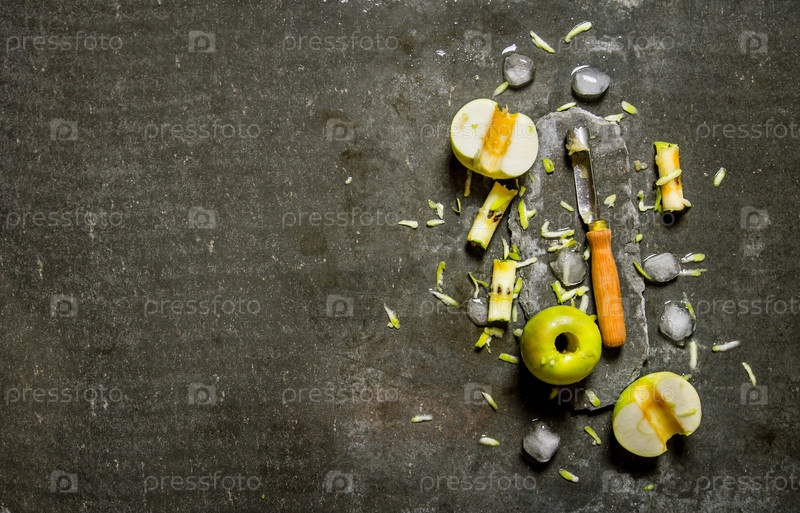 Зеленые яблоки с ножом и льдом
