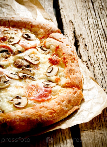 Вкусная пицца на старой бумаге