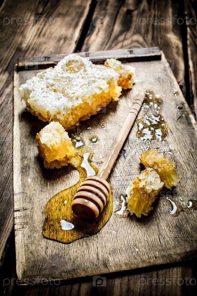 Натуральный мед в сотах с ложкой