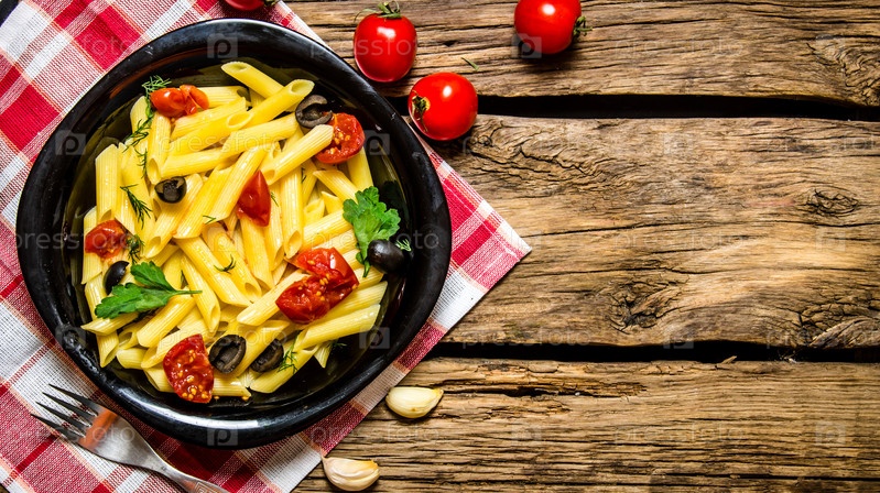 Паста с помидорами, оливками и зеленью