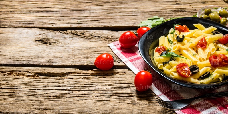 Паста с помидорами, оливками и зеленью