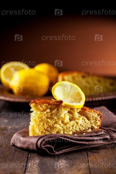 Лимонный торт на деревянном столе