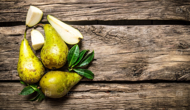 Свежие груши с листьями