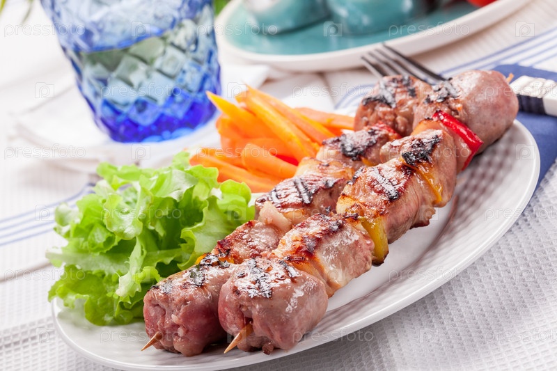 Мясной шашлык с морковью и салатом