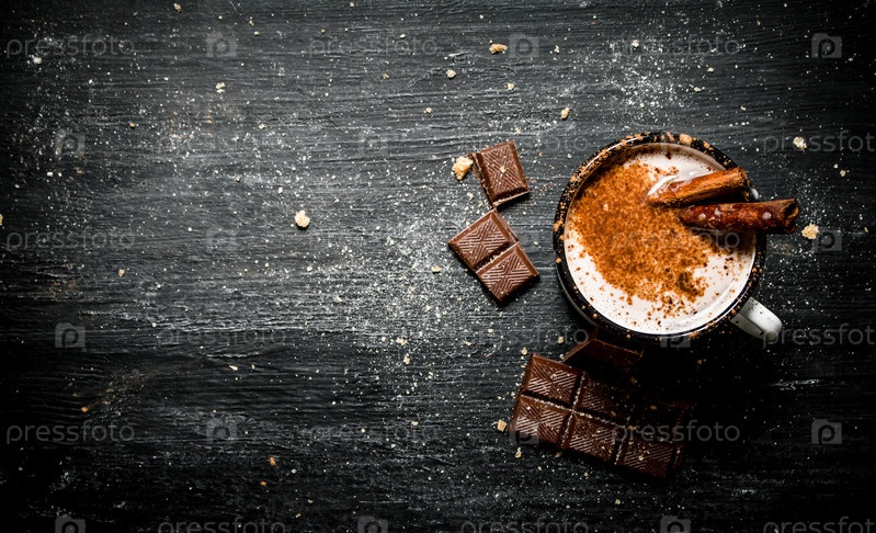 Ароматный напиток какао с корицей и шоколадом