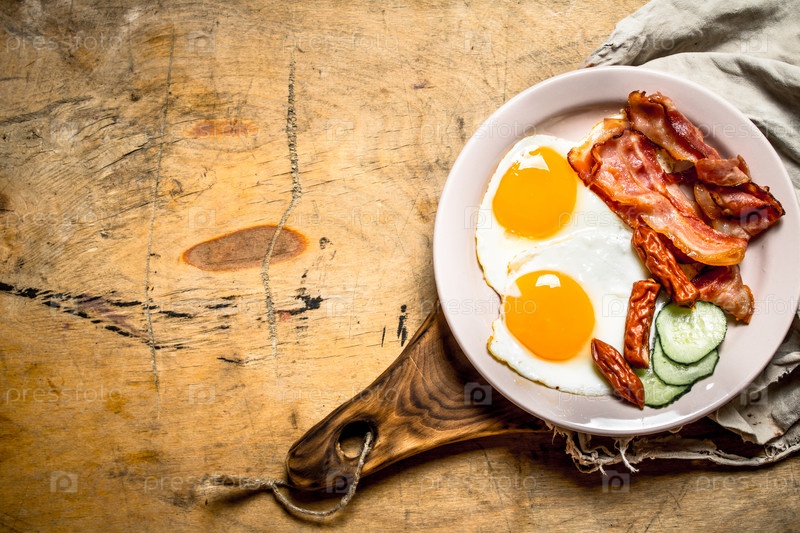 Жареные яйца с беконом и помидорами