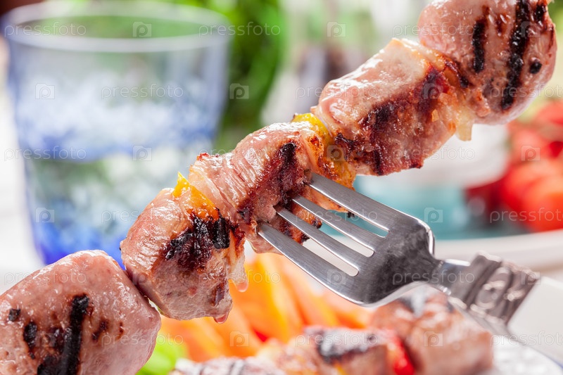 Мясной шашлык с морковью и салатом