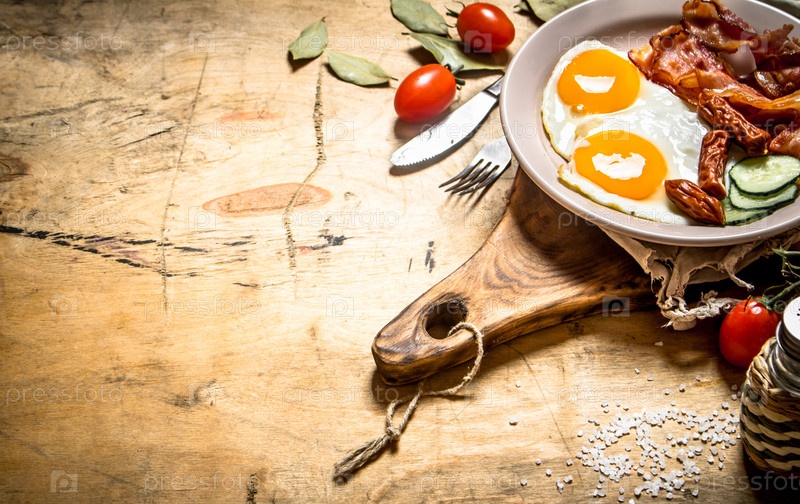 Жареные яйца с беконом и помидорами