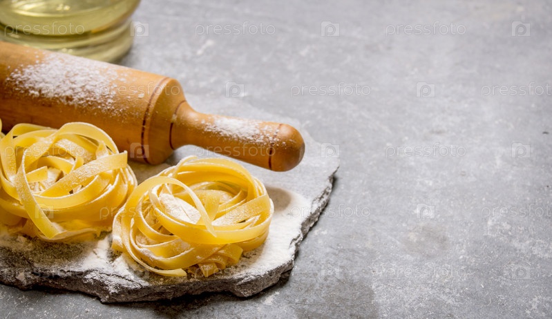 Сухая паста со скалкой и мукой