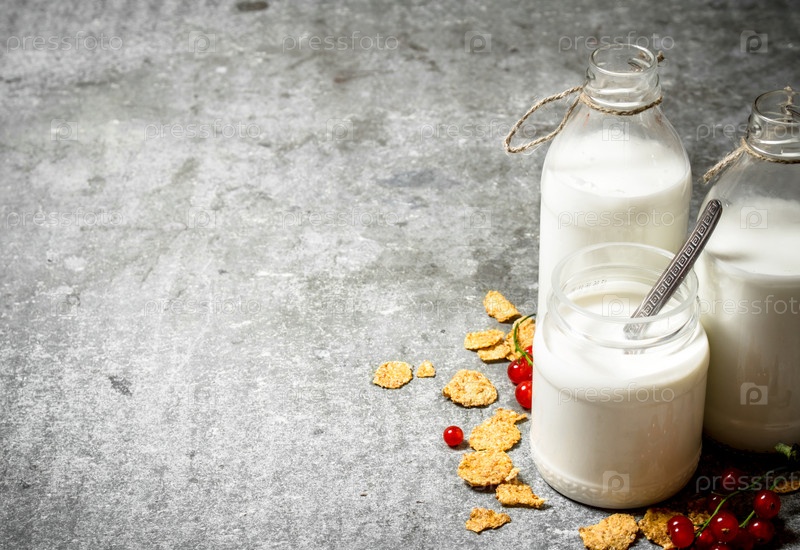 Молоко с хлопьями и ягодами