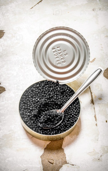 Черная икра в баночке с ложкой