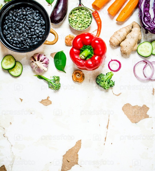 Свежие сырые овощи с фасолью и чечевицей