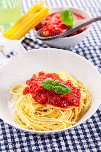 Спагетти с соусом из помидоров на классическом домашнем столе
