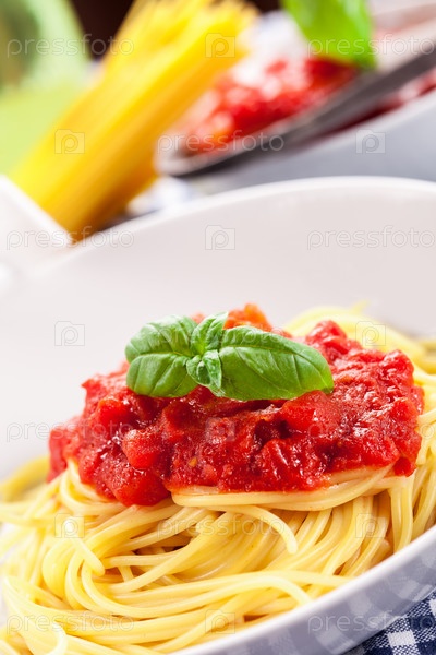 Спагетти с соусом из помидоров на классическом домашнем столе