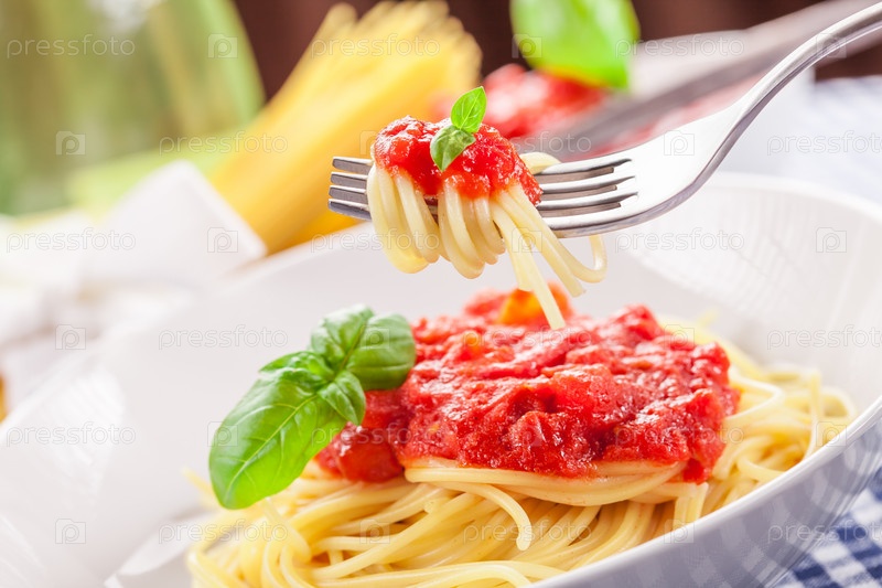 Спагетти с соусом из помидоров на классическом домашнем столе