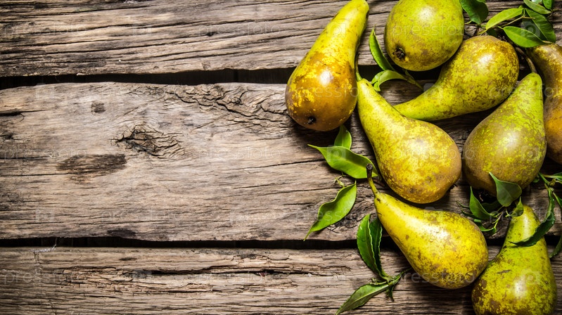Свежие груши с листьями