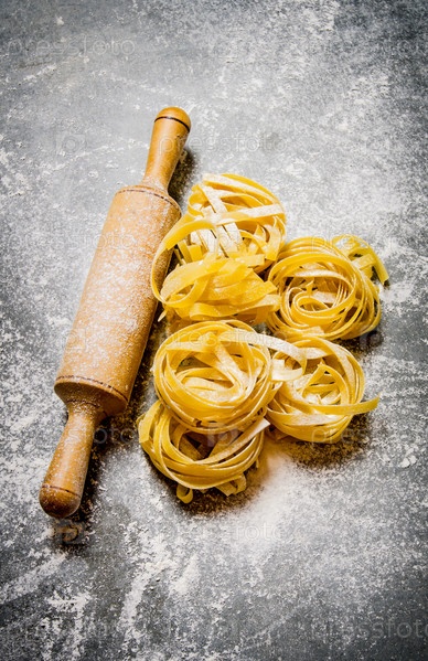 Сухая паста со скалкой и мукой
