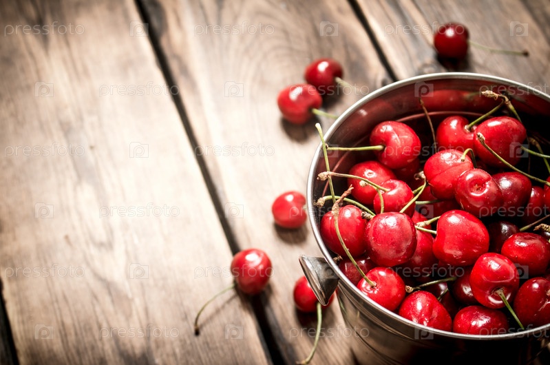 Свежая вишня в ведре