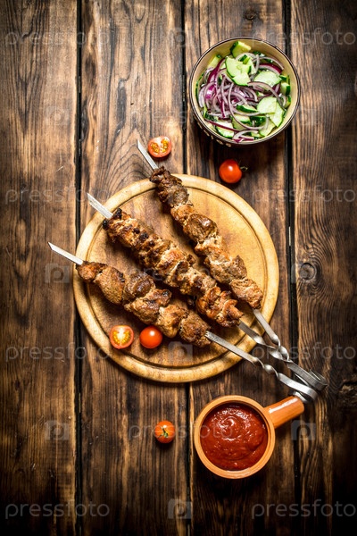Шашлык с салатом из свежих огурцов и лука