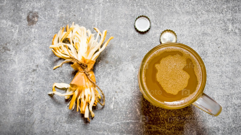 Стакан пива и косичка соленого сыра