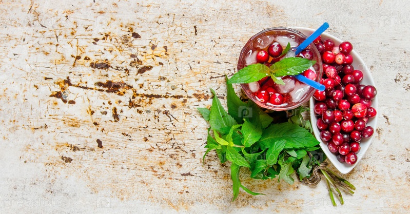Ягодный коктейль в стакане со льдом и мятой