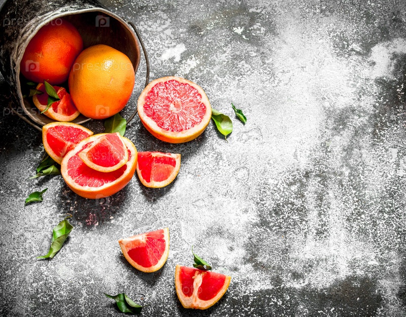 Спелые грейпфруты в старом ведре