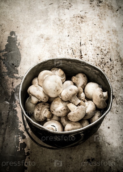Свежие грибы в старом горшке