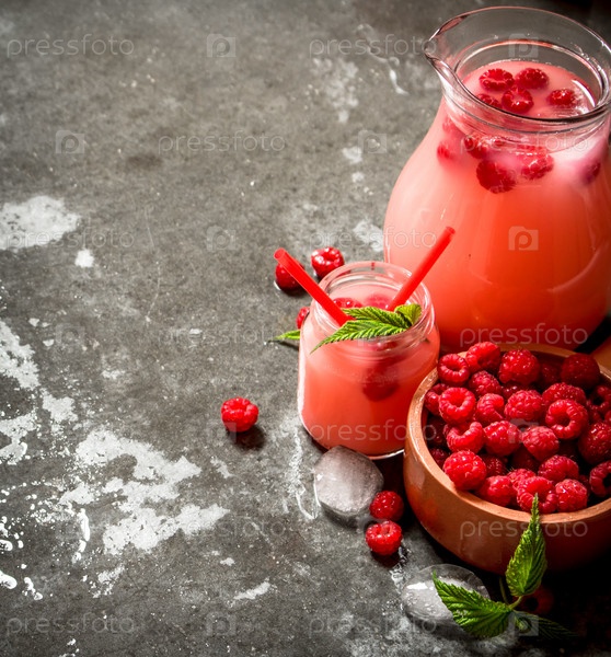Малиновый сок с ягодами и льдом