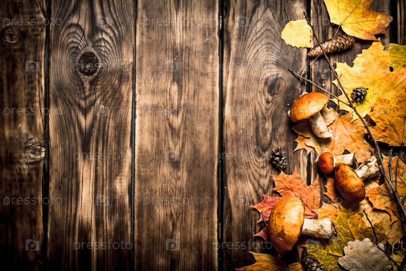 Осенние грибы с листьями клена