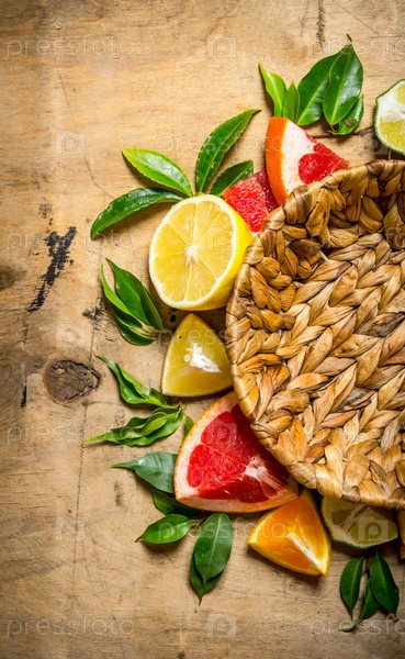Пустая корзина и цитрусовые