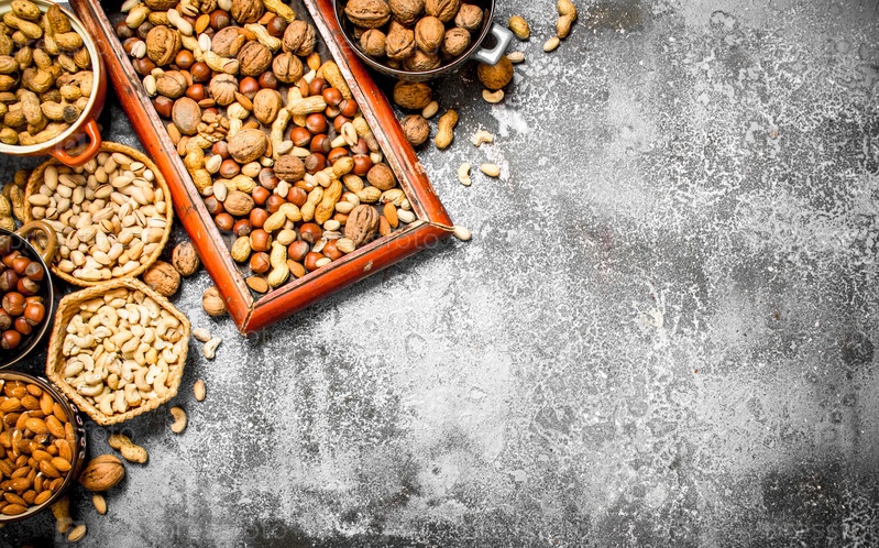 Много орехов в разных мисках