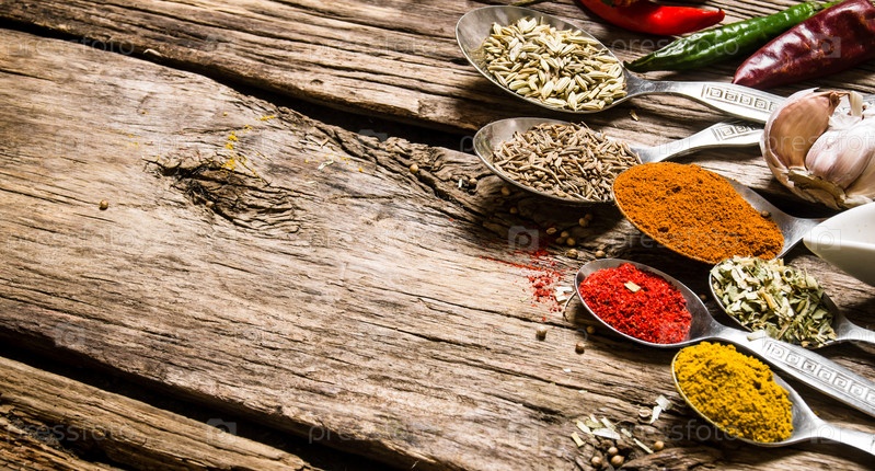 Различные виды специй в ложках
