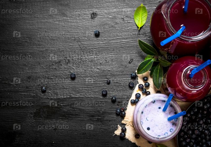 Черничный смузи и свежий сок на старой ткани