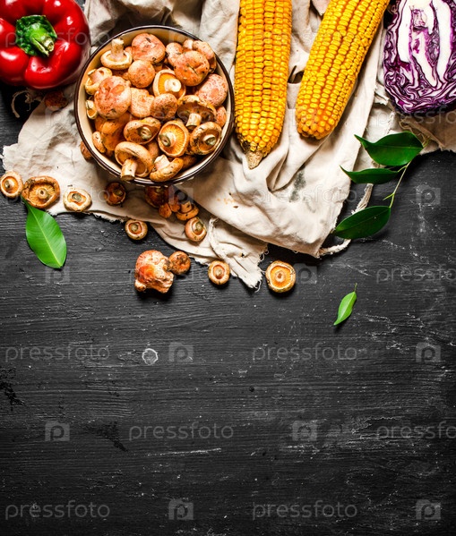 Свежие грибы с овощами