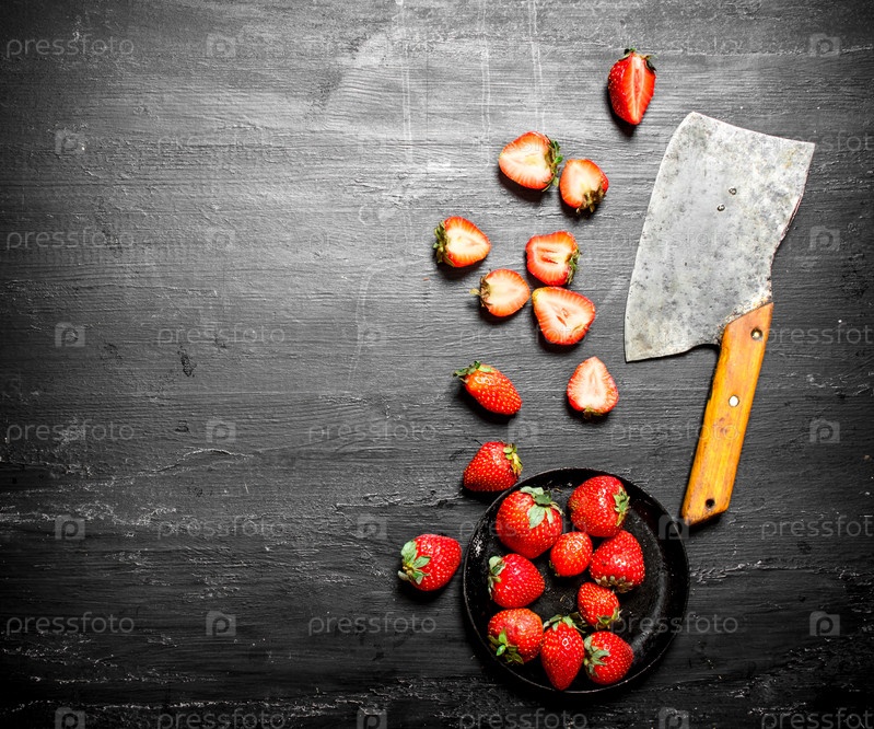 Нарезанные клубника со старым топориком