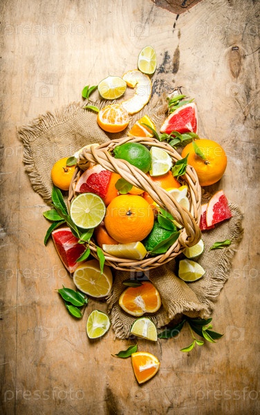 Корзина цитрусовых - грейпфрута, апельсин, мандарин, лимон, лайм