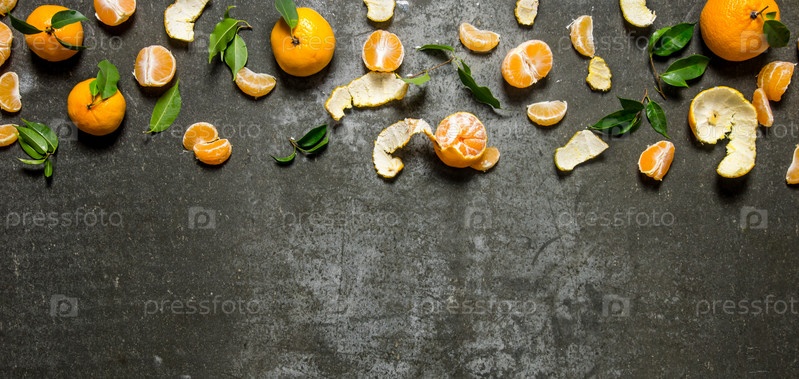 Свежие мандарины с листьями