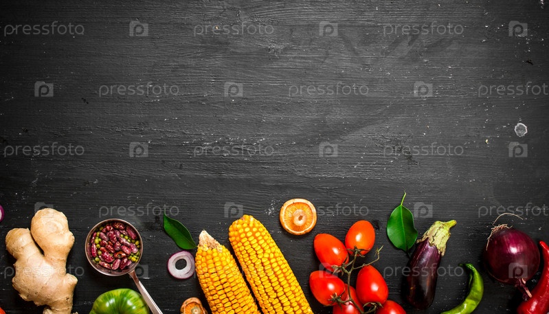 Большой набор органических продуктов питания. Свежие сырые овощи