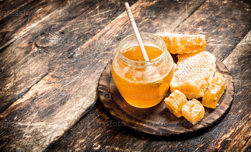 Мед в банке с орехами