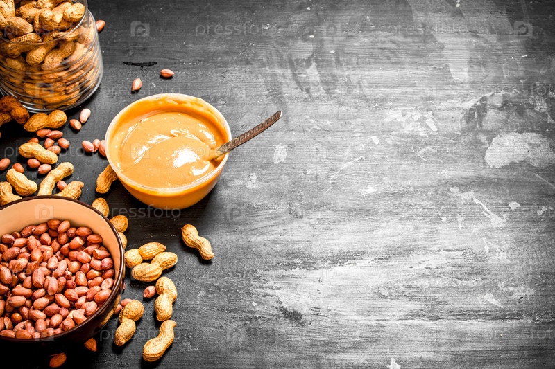 Арахисовое масло с орехами в миске