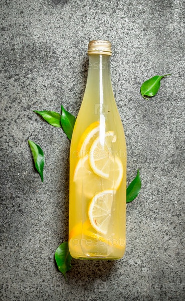 Лимонад в бутылке с кусочками свежих лимонов