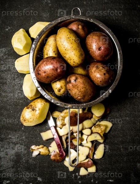 Картофель в дуршлаге на каменном столе