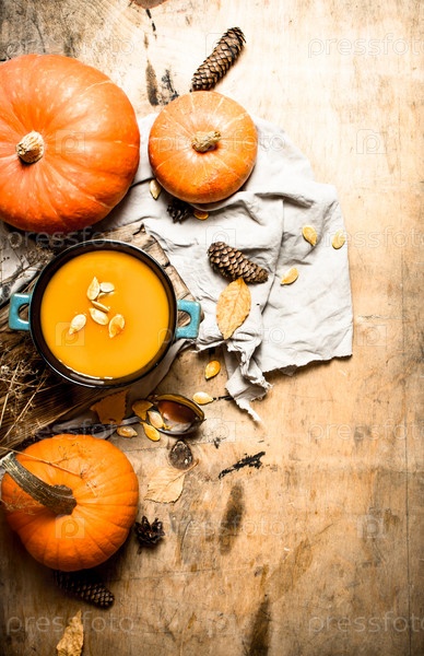 Суп из тыквы с семенами на старой ткани