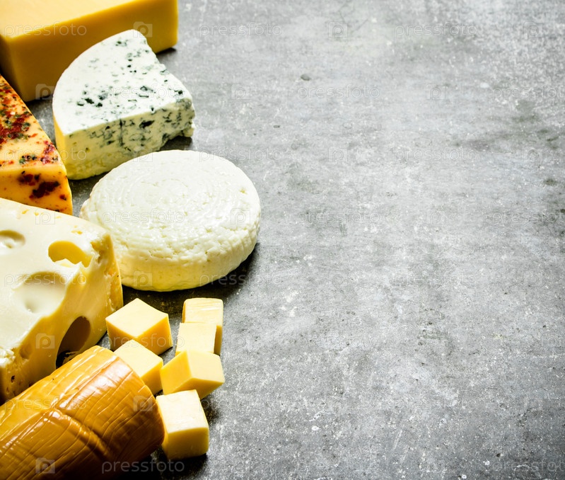 Различные виды сыров. На каменном столе