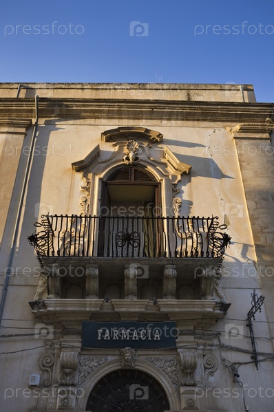 Италия, Сицилия, Шикли (провинция Рагузы), здание в стиле6 барокко, старый балкон