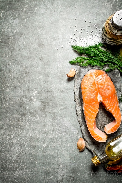 Кусок сырого лосося со специями и травами