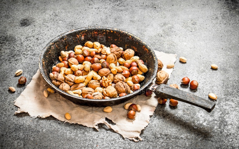 Различные орехи в сковороде