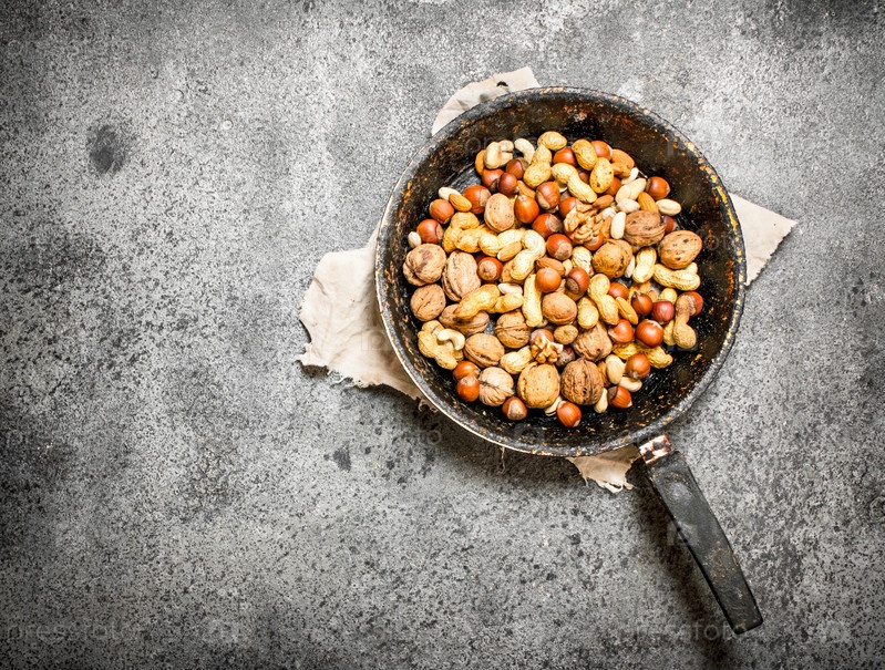 Различные орехи в сковороде