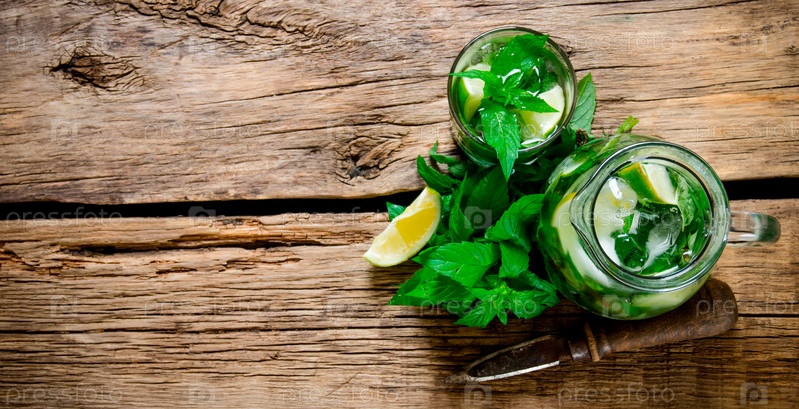 Приготовленный коктейль из лайма, мяты, рома и льда